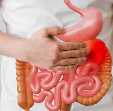 Gastritis and Peptic Ulcers Inflammation or erosion of the stomach or intestinal lining due to excess acidity, stress, irregular food habits, or long-term Pitta aggravation.