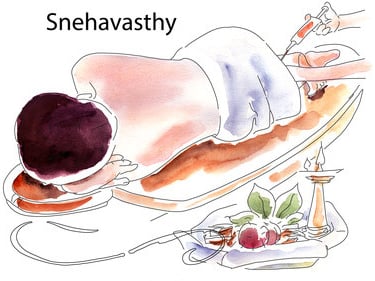 Snehavasthi, also spelled Sneha Vasti or Sneha Basti, is a therapeutic oil enema treatment and a key procedure in the traditional Indian system of medicine known as Ayurveda. It involves the administration of medicated oils into the rectum.